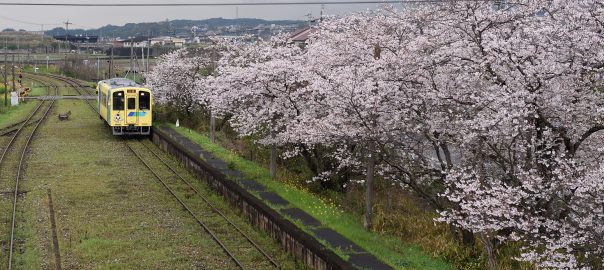 金田駅近くの桜並木を見ながら金田駅へと向かうなのはな号 投稿者 : shortgame様