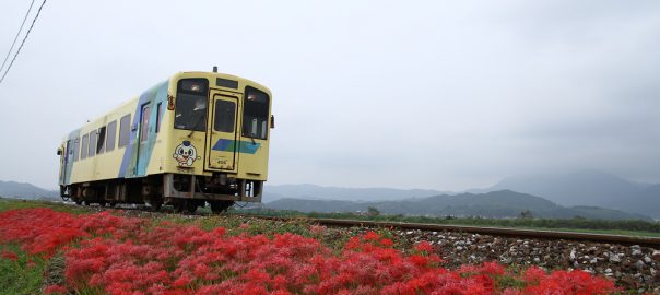 田んぼに実った稲が作る黄金の絨毯。 その中を走る列車。 列車の色と田んぼの色が、なんともいい感じです。 投稿者 : kapibara41 様