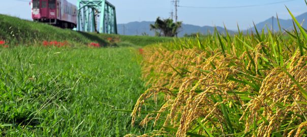 重さで頭を垂れる稲穂の横をゆめタウン号が軽快に走っていきました。 投稿者 : ポン太 様