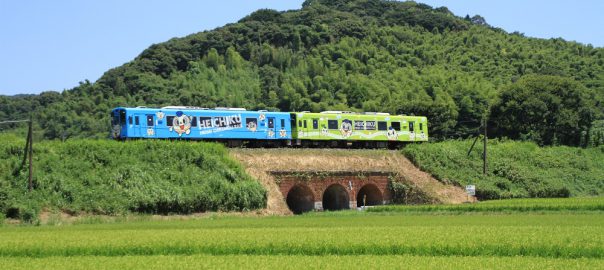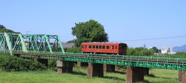 嘉麻川を渡るへいちく浪漫号