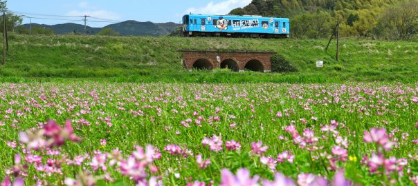 内田三連橋梁の近くに一枚だけレンゲの花が咲いている田んぼがあったので、車両と橋梁を入れてパチリ。 投稿者: ポン太さま